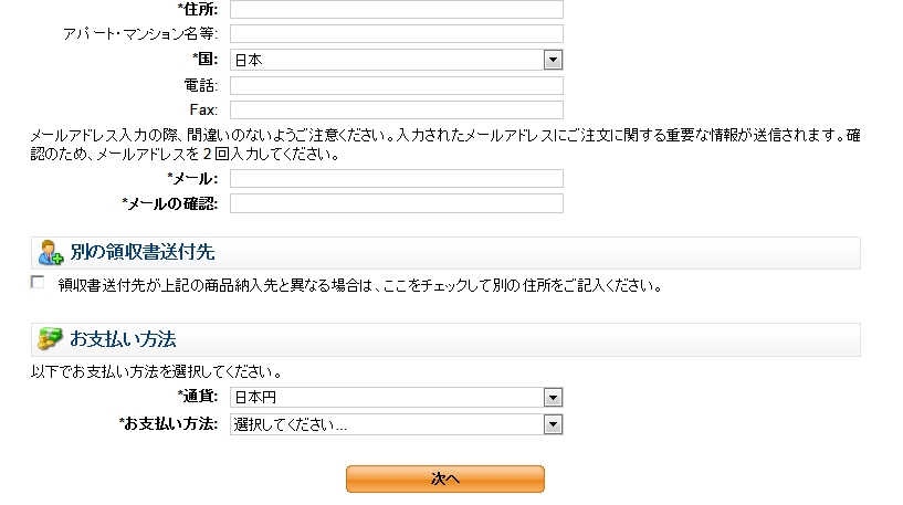 日本円で価格が表示され個人情報を入力する画面になりますので入力していきます。