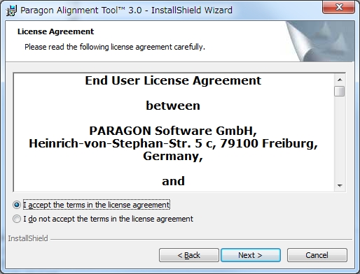 それではダウンロードしたParagon Alignment Toolをインストールしましょう。