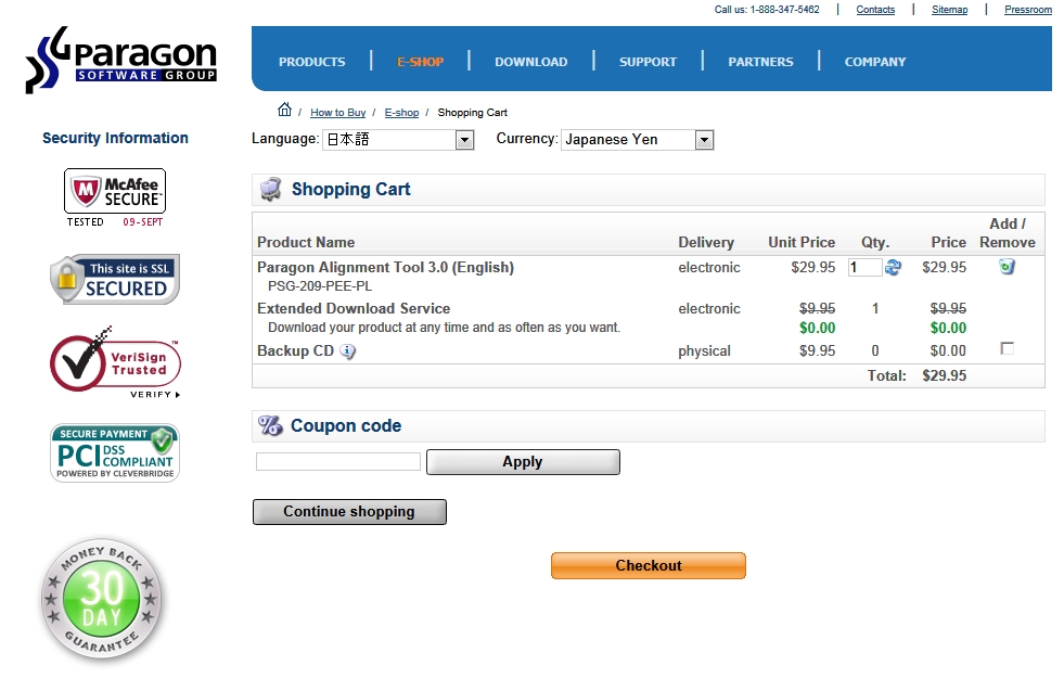 まずはParagon Alignment Toolを販売しているParagon Softwareへいきます、日本語ページはあるのですがそちらだとParagon Alignment Toolが掲載されておらず購入ができませんのでそのまま英語圏向けのページにしておいてください。
