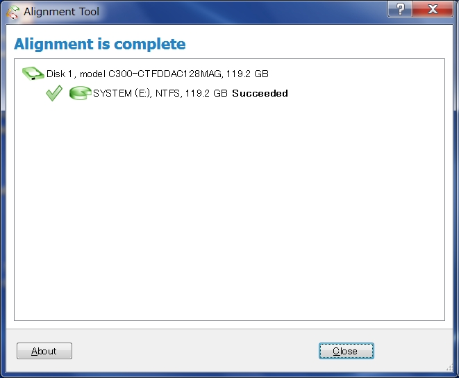 私の場合は自作パソコンだと最適化に何度も失敗したので前に紹介したDELL Inspiron 15RにeSATA-SATAケーブルでSSDを接続してParagon Alignment Toolでパーティションアライメントを最適化したら成功しました。