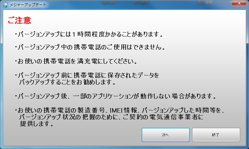 またアップデートはケータイアップデートで最新の状態となっていることが条件となっています、確認は設定>端末情報のビルド番号が01.00.03でないとアップデートはできないのでまずはケータイアップデートを先に実施しておきましょう。