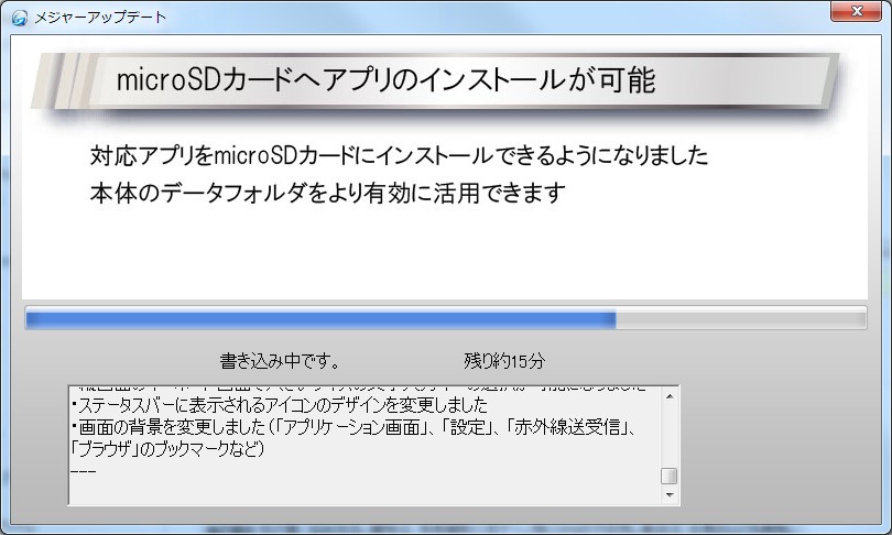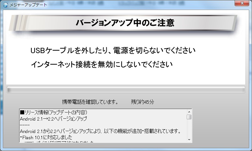 ケータイアップデートはメジャーアップデートと違いIS03単体で実行できます(時間は30分~1時間)