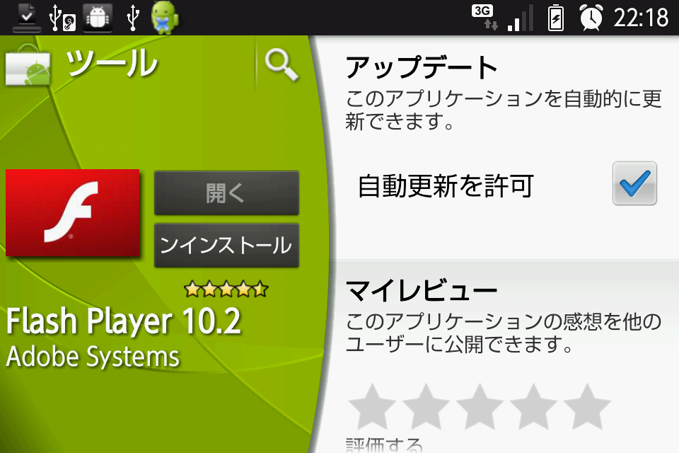 Flashは待ちに待った人も多かったのではないでしょうか、Androidマーケットでダウンロードして使えるようになっています。