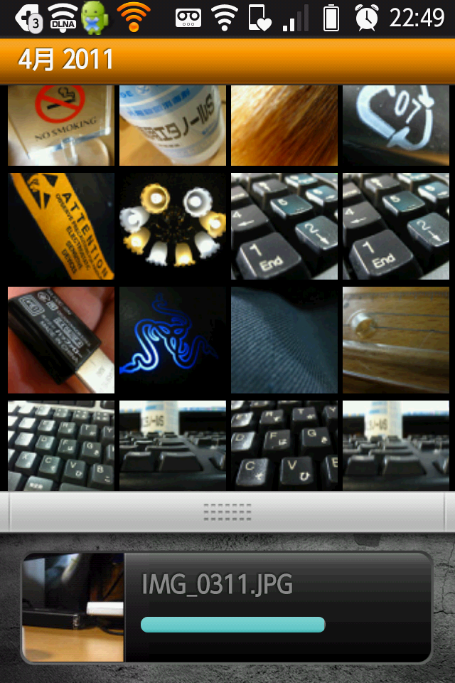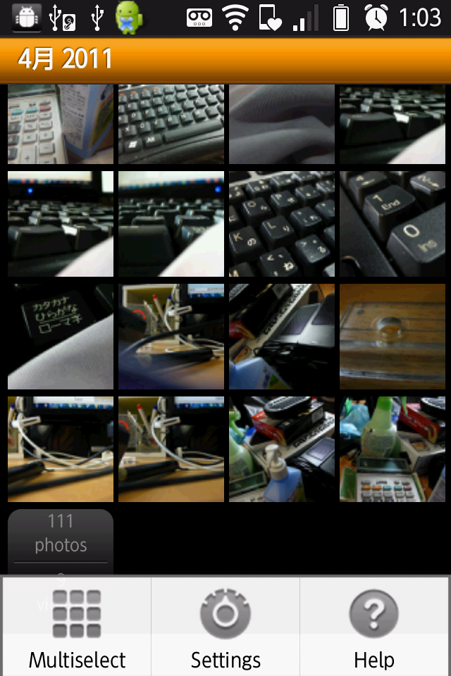 Eye-Fiアプリを立ち上げます、何も設定していなくても端末の中に画像があると自動的に表示されるようです。
