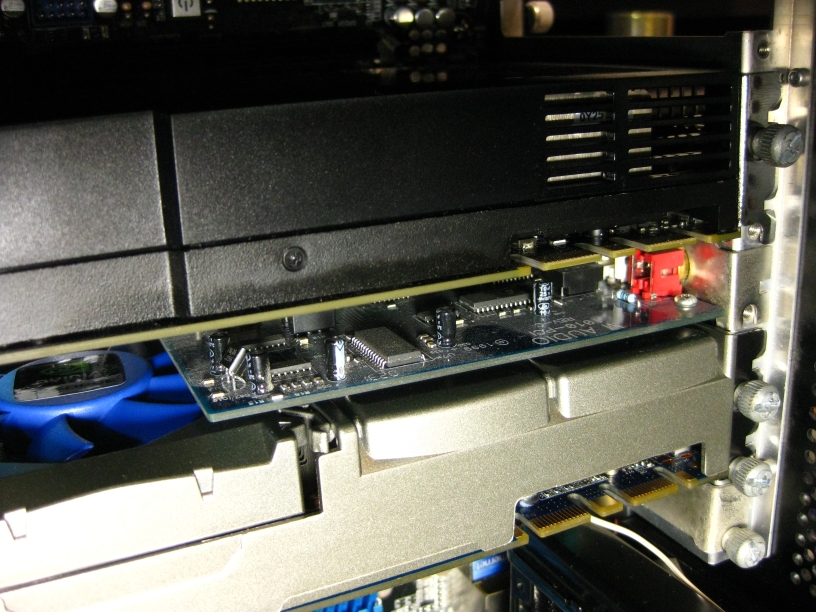 マルチビデオカード時にはクリアランスに注意が必要です、Delta1010のPCIカードをさしてみましたがクリアランスはぎりぎりでものによってビデオカードに干渉する可能性があります。