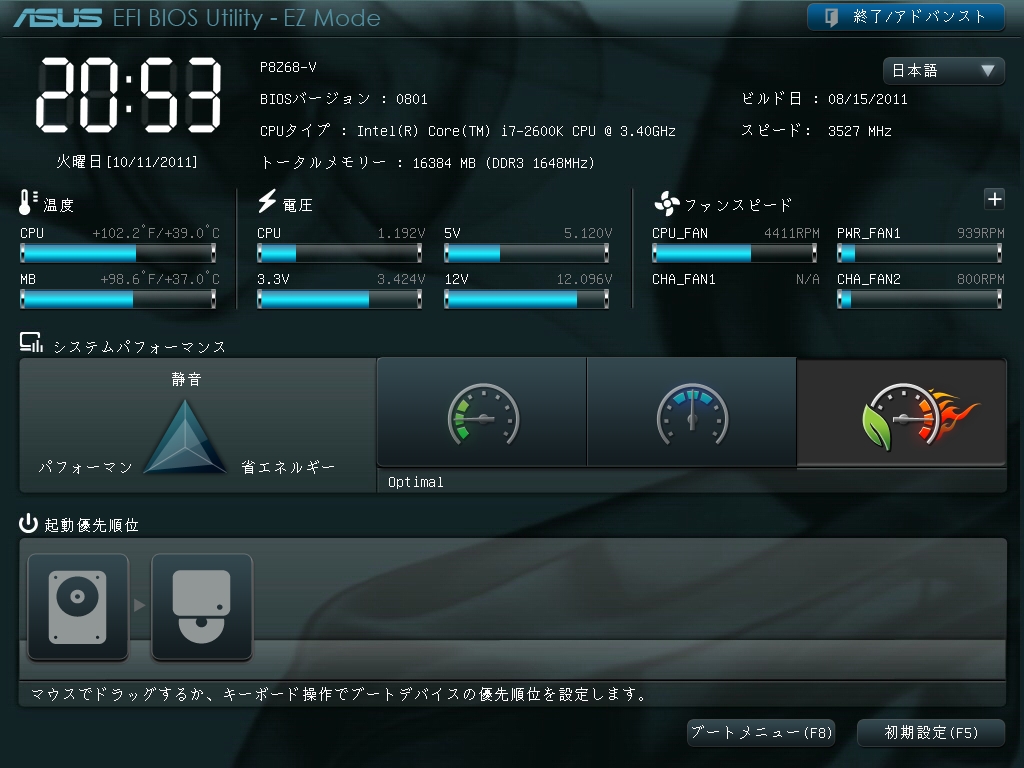 P8Z68-Vには専用のツールが用意されておりマザーボードの情報だけでなくオーバークロック機能やファンコントロールも簡単にできるようになっています。