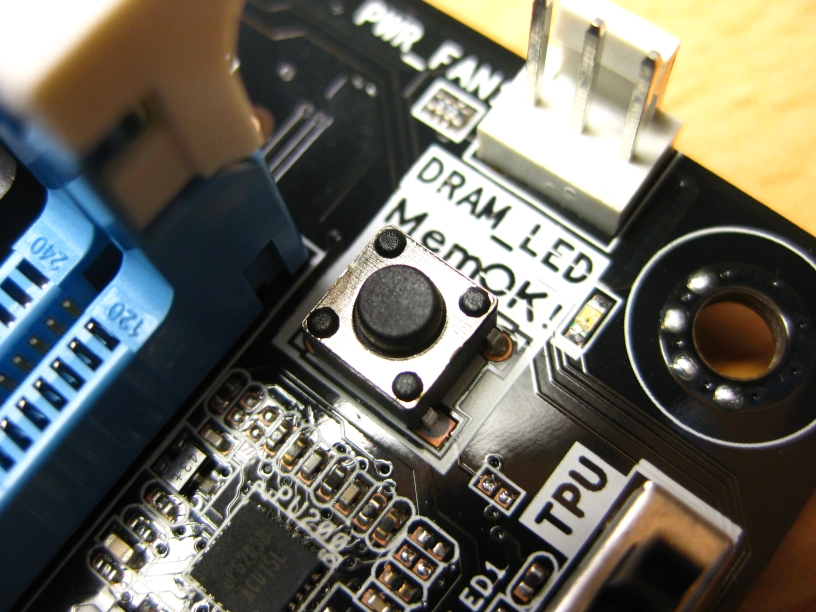 メモリがうまく認識しない場合に備えてメモリの設定を調整してくれるボタンが搭載されています、メモリを積んだがメモリエラーでビープー音がしたならこのボタンを押して自動的に調整が可能となっています。