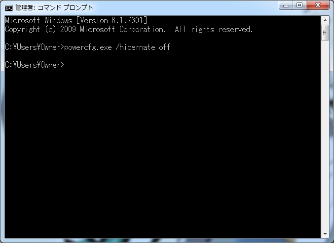 次は休止状態をサポートするファイルを消去します、この設定は休止状態の機能をオフにしてファイルを消去するので休止状態を使用している人は使えません。