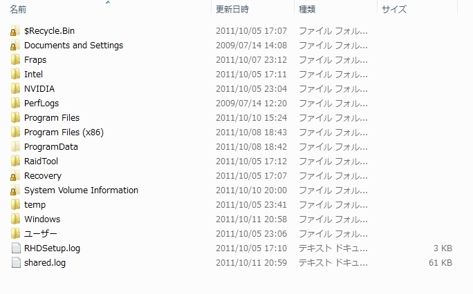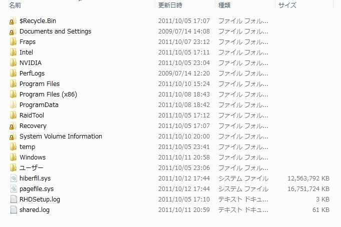 これでCドライブの直下にある2つの巨大なファイルを拝むことができます。