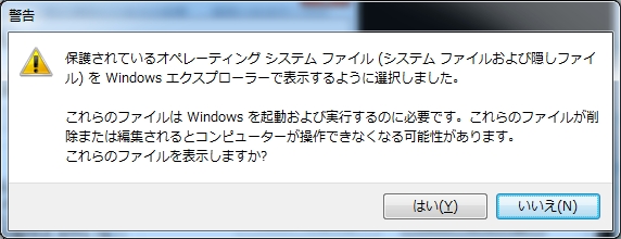 次に保護されたオペレーティングシステムファイルを表示しない(推奨)のチェックを外します。