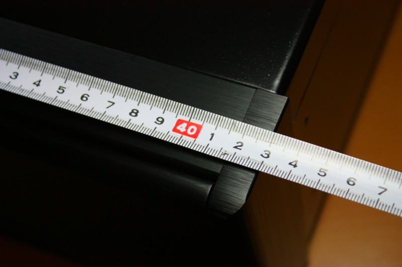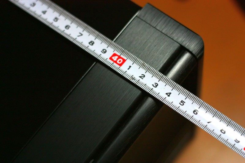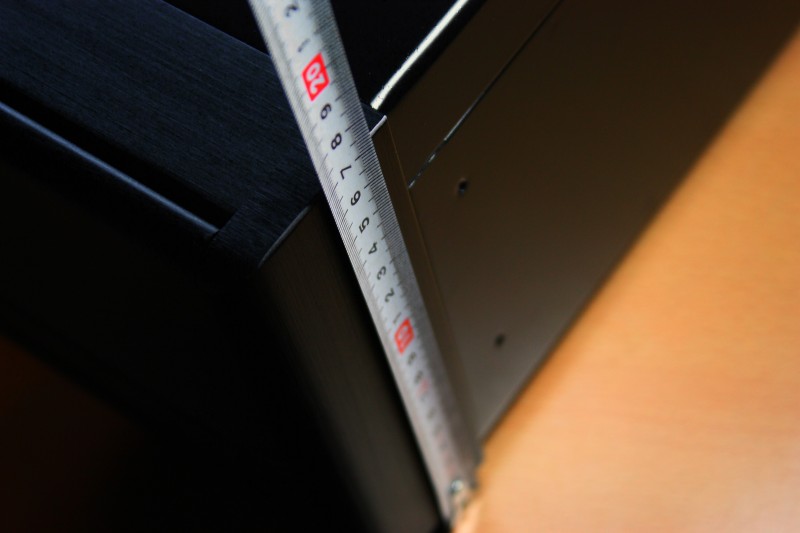 ケースの幅は43cm、奥行きは44cm、高さは17.5cmとなっています、ミドルタワーサイズの大きさなのでもしTV台やローボードに入れる場合は寸法を確かめておきましょう、奥行きはコネクターやコードが入る分を計算しておかないと取り付けてみたけど入らなかったということになりかねませんので注意が必要です。