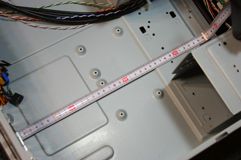 ベイユニットを装着しているときでは25cmのスペースしかありませんが取り外せば36cm近くものスペースが生まれハイエンドタイプのビデオカードも比較的余裕で入ります。