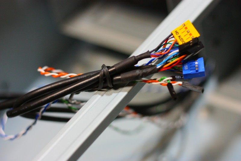 最後にATX電源ケーブルについてですがマザーボードのコネクタの位置によってはこのように5インチベイの真後ろになりケーブル同士が干渉しやすくなります。