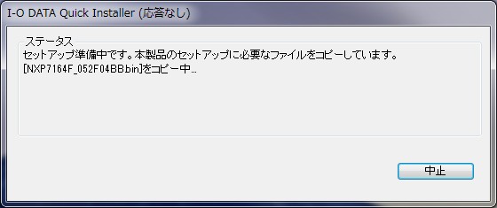 セットアップ準備のためにファイルがコピーされます、このときにウィンドウをクリックすると応答無しになりますが実際にはしっかりと作業をしていますので強制的に終了しないようにしましょう。