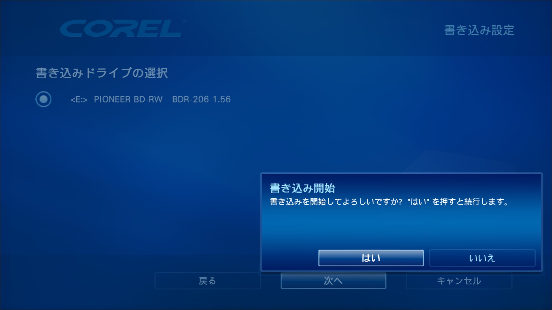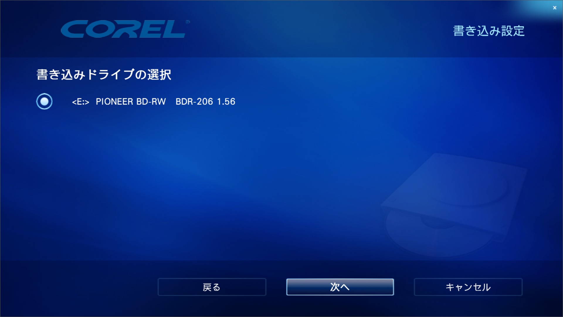 次にドライブの選択画面が出てくるので書き込むドライブを選択します。