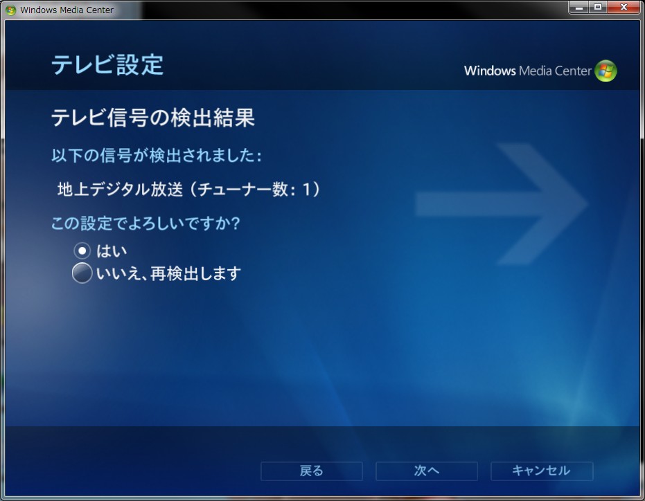 次にWindowsMediaCenterを立ち上げて設定をします、こちらはインストール時のように自動で設定するわけではないので手順どおりセットアップする必要があります。