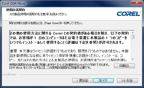 この画面ではシリアル番号が入力されていませんが実際は自動的に入力されます、またこれより先の画面でもドルを押してこの画面に戻った場合はシリアル番号が消去されインストールできなくなるため注意が必要です。