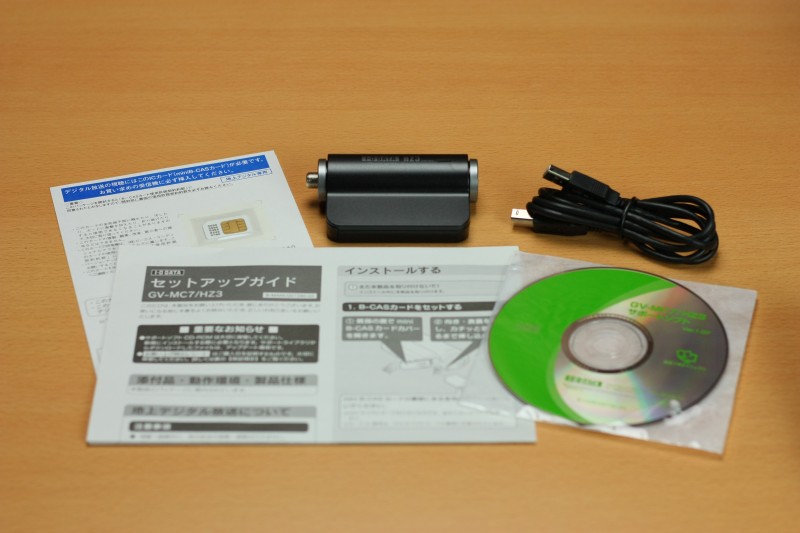 GV-MC7/HZ3は他のUSB接続タイプの地上デジタルチューナーと比べると比較的小型化されています、この小さな筐体を実現したのが従来の一般的なカードサイズからSIMカードサイズにまで縮小化されたminiB-CASカードになります。