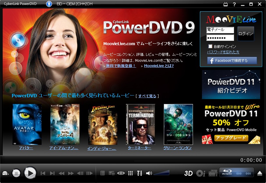 おそらくPowerDVD9が一番使う機会が多ためか機能制限は無く初期からある機能は使えるようになっています、ただし用意されている機能はアップグレード版と比べると基本的な機能しか備わっていません、また登録を促すメッセージが起動時に表示されたりと目障りなところがあります。
