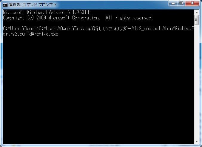 次にGibbed.FarCry2.BuildArchive.exeを使用しますがこのプログラムはDOSプログラムなのでDOSコマンドを入力する必要があります。