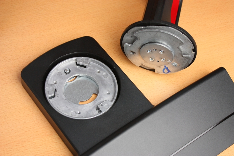 これらの調整は、ある程度固定に制限があるノッチ式ではなく無段階調整式になっています。また、調整は固定ロックがないので手で自由に動かしてココだというところで簡単に固定することができます。まるで高機能モニターアーム並の調整具合です。