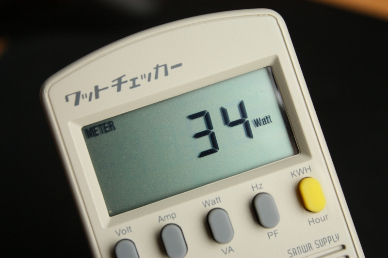 BenQ XL2420Tは初期設定のままだと34Wです。120Hzで駆動するからといっても普通の24インチモニターと変わりのない消費電力です。
