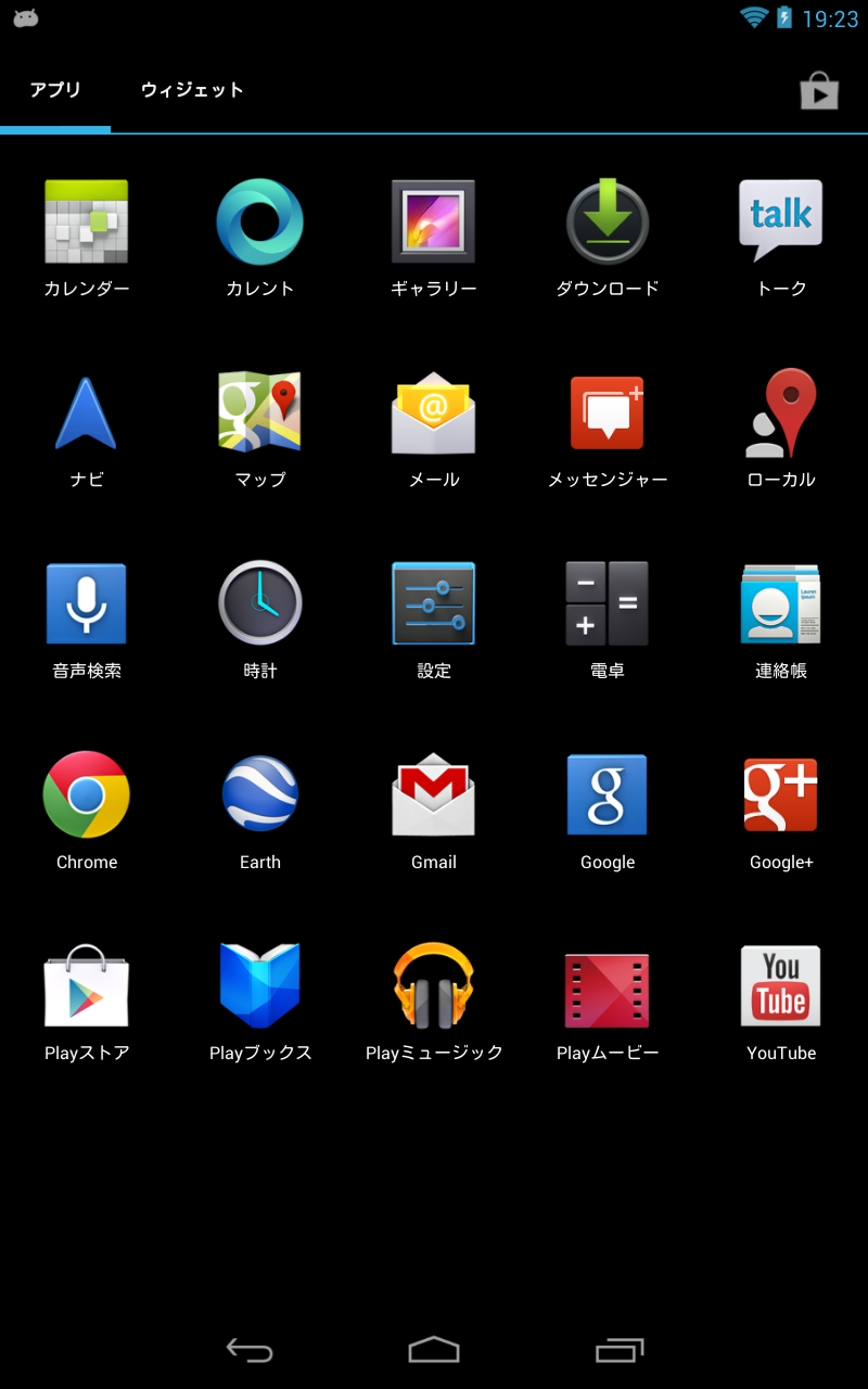 アプリについては必要最低限のものしかプリインストールされていないのでサッパリとしています。Android 3と違いGooglePlayのコンテンツ別にアプリが用意されているので、各コンテンツに素早くアクセスできます。