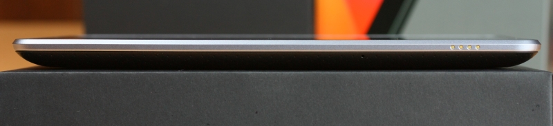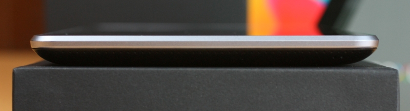 背面はラバー状になっており滑り止め加工が施してあります。これは非常に便利で、従来の光沢のある背面をしているタブレットは汗ばむとすぐに滑りはじめましたが、Nexus 7ではこの背面がしっかりとフィットして汗ばんでも滑ることがありません。