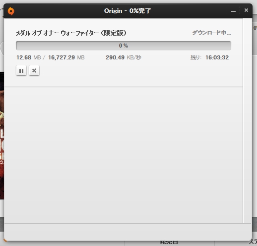 もし、途中でダウンロードを中断したり回線が切断した場合はHideIPVPNで再びVPN接続をして、Originを立ち上げればダウンロードができるようです。