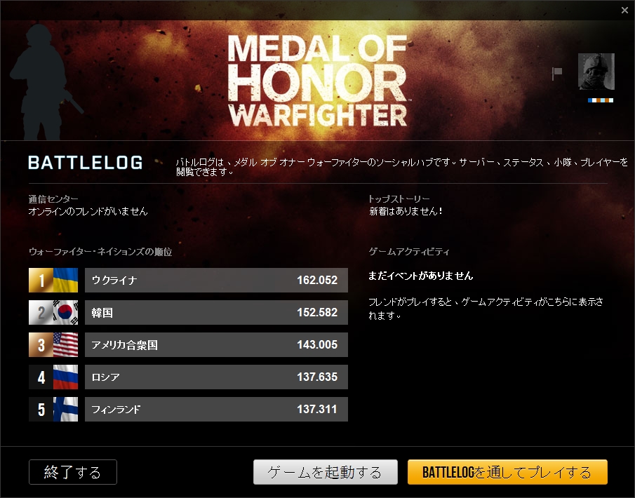 ●Medal of Honor: Warfighterの立ち上げ方法