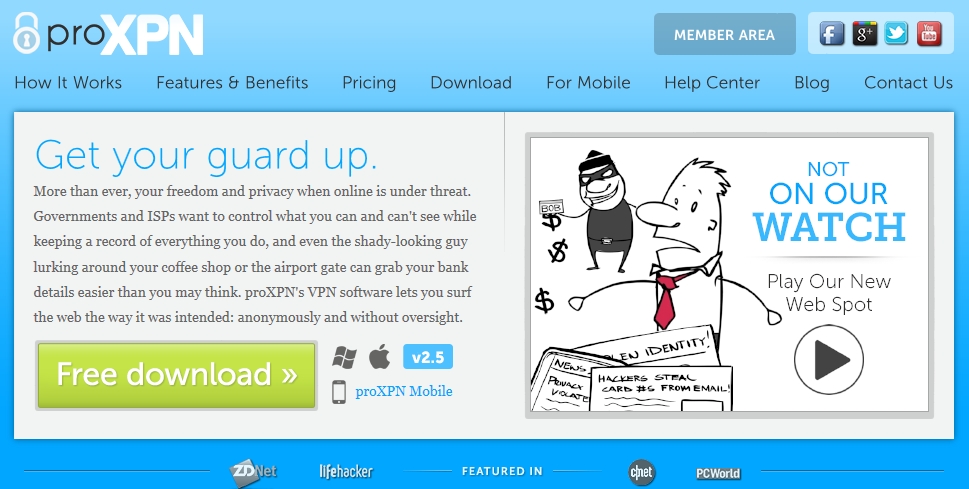 まずはproXPNのサイトに行きFree downloadを選択してproXPNアプリのインストーラーをダウンロードします。