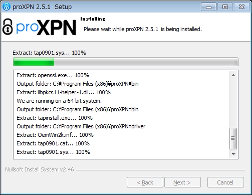 先ほどダウンロードしておいたproXPNアプリのインストーラーをインストールします。