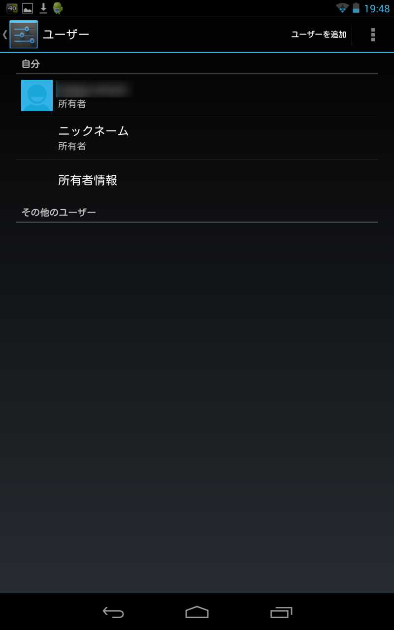 ユーザーアカウントのアイコンをタッチするとユーザー管理画面へと切り替ります。ここで新しくユーザーアカウントを追加したり、ユーザーを変更することができます。