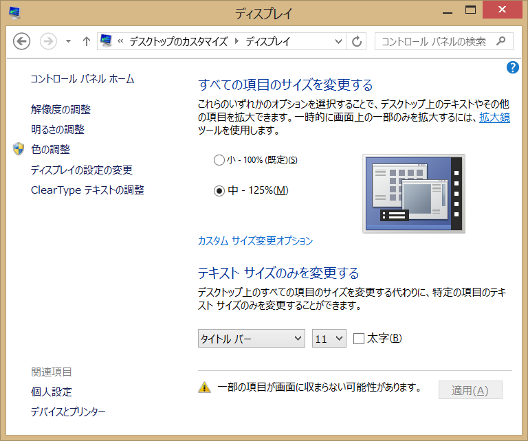 この設定の数値を大きくすると操作性が上がるのですが、逆に表示が崩れウィンド内に納まりきれずに一部が表示されないアプリもあるため困りものです。