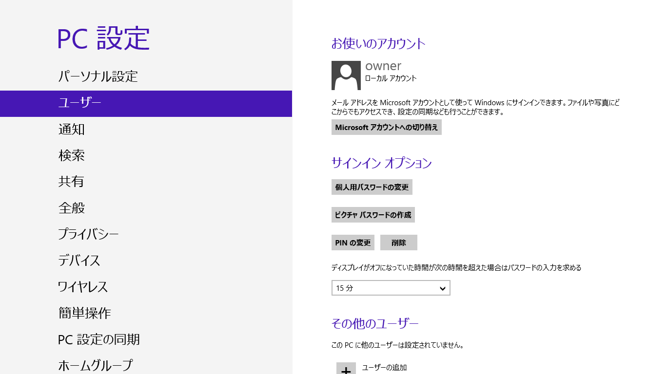 Window8では従来のローカルアカウント形式ではなくMicrosoftアカウントを使用することが推奨されています。