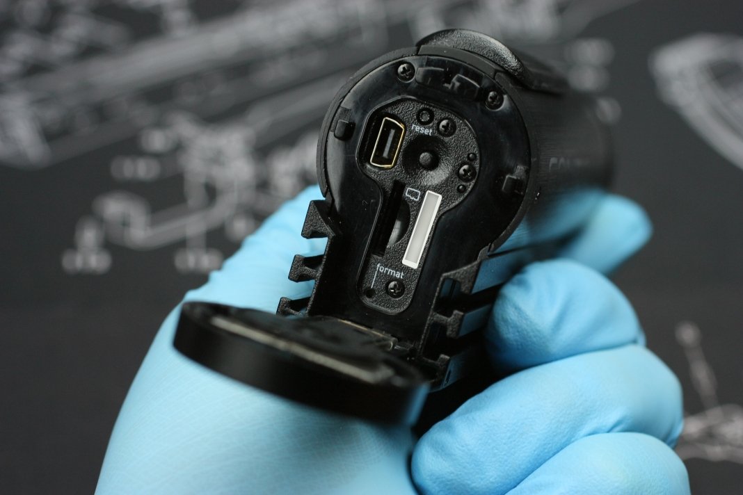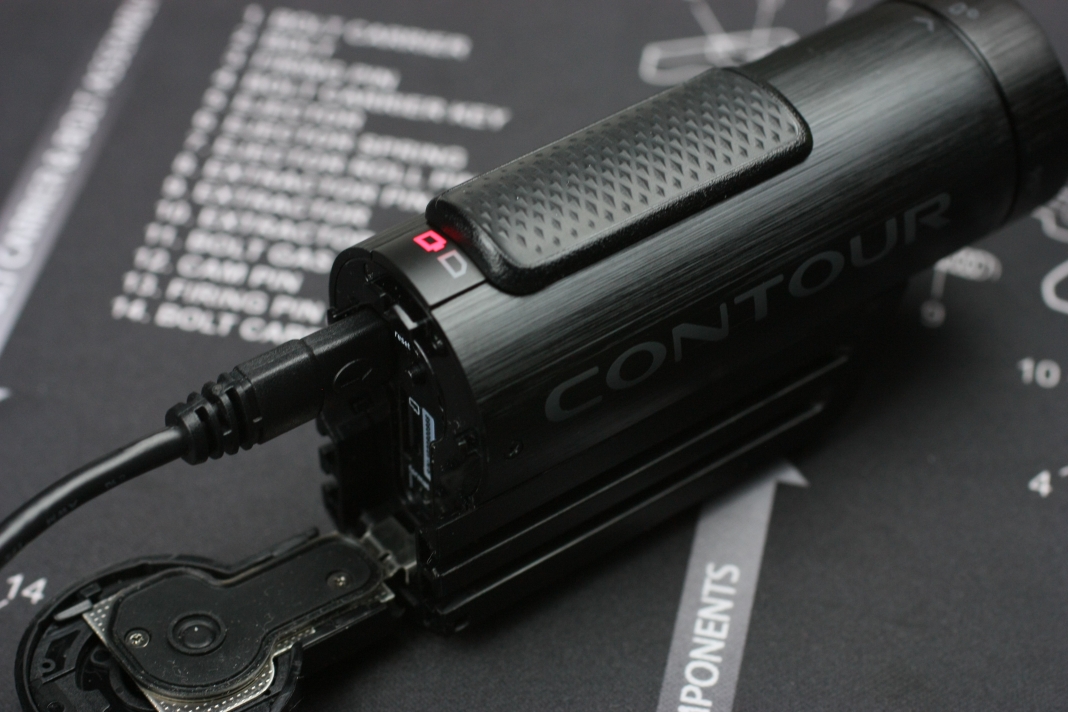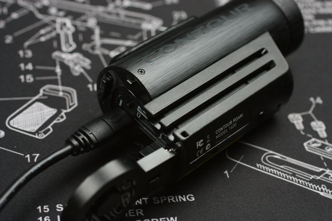 CONTOUR ROAMの充電や設定、microSDカードへのアクセスは後部の蓋を開けて行います。