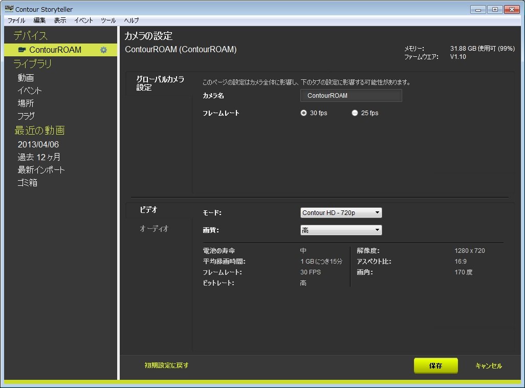CONTOUR ROAMは最大170度という広い視野角を持っていますが、録画モードにより視野角が変わってきます。