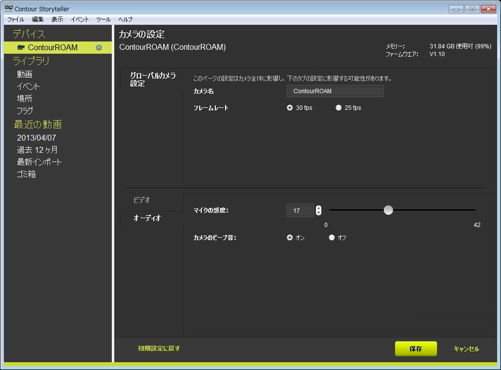 マイクの感度、操作時のビープ音のオン/オフ設定が可能です。