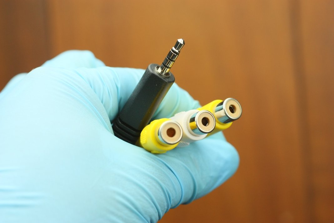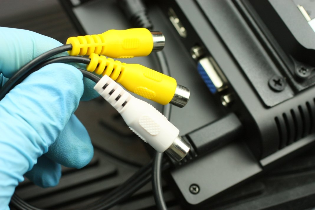 付属のAVケーブルは専用のケーブルで、映像2系統と音声1系統となっています。