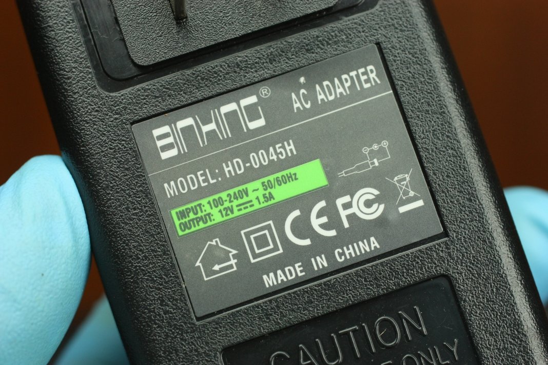 ACアダプターは12V 1.5A出力となっています。