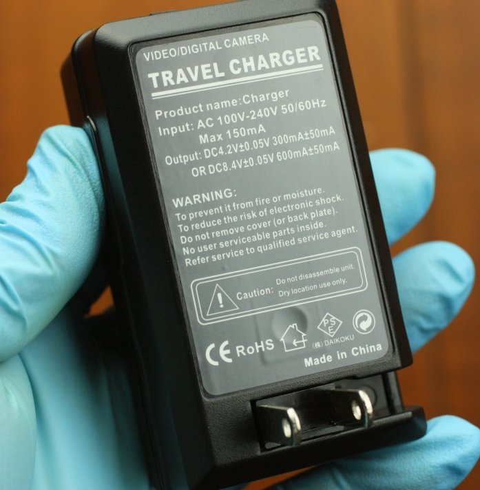 この充電器は出力が800mA+-50mAなので、今回購入した7200mAhの互換バッテリーの充電には9時間以上必要な計算になります。