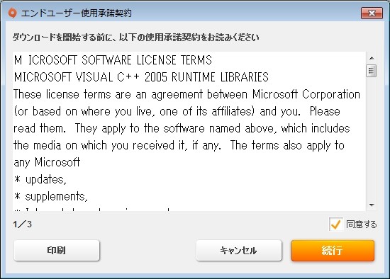 ダウンロードした実行ファイルを実行し、インストール用のファイルをダウンロードします。