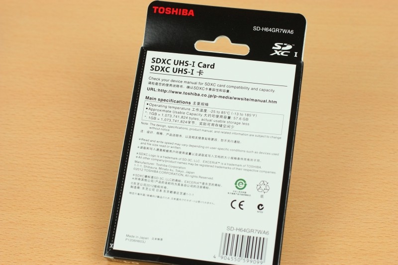新しいデジタル一眼レフ用に並行輸入品のUHS-I対応のSDXCカード、TOSHIBA EXCERIA SD-H64GR7WA6を手に入れました。