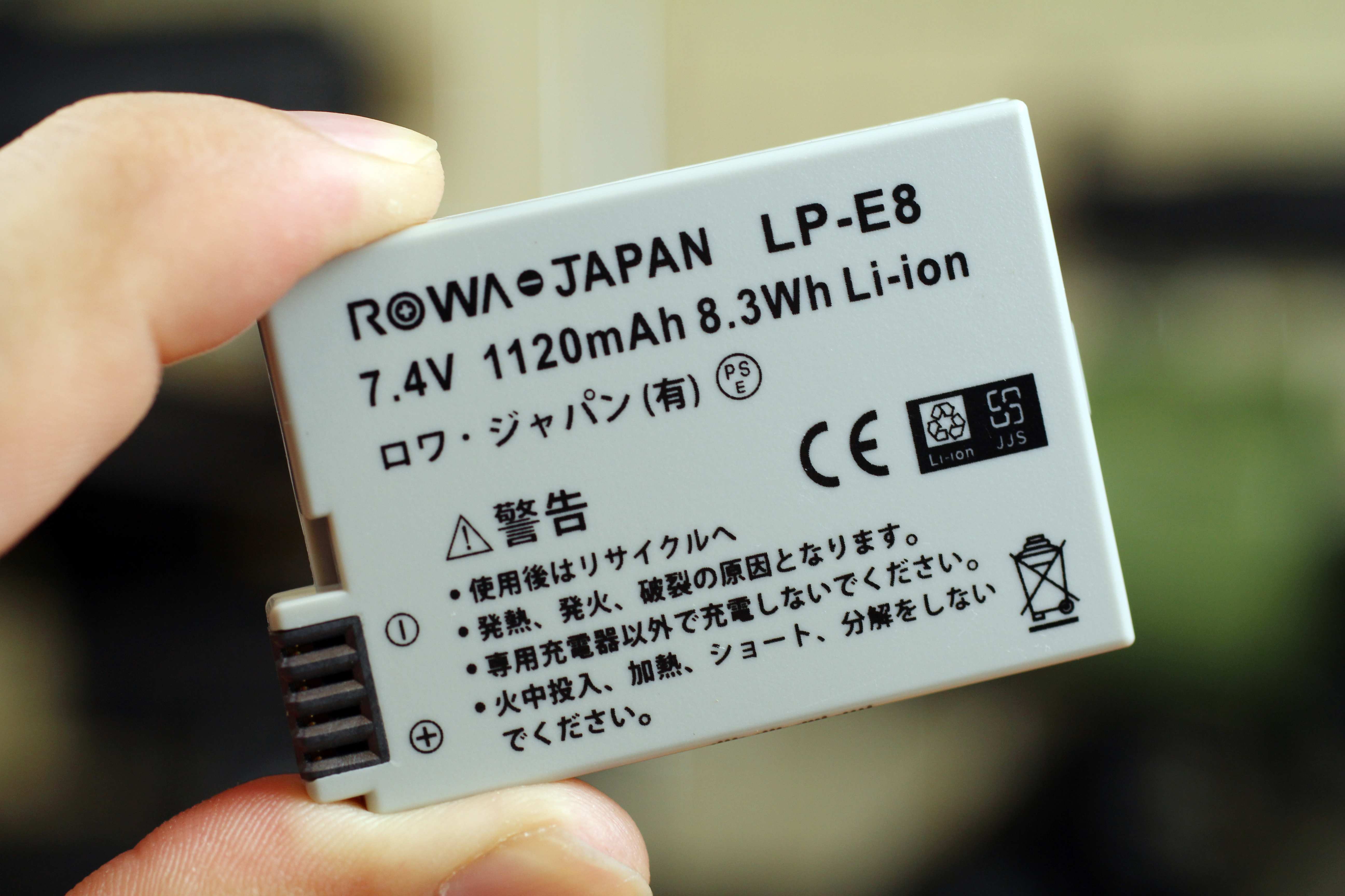 そのため、バッテリーの容量はROWAのLP-E8互換バッテリーが、僅かに純正バッテリーよりも高くなっています。