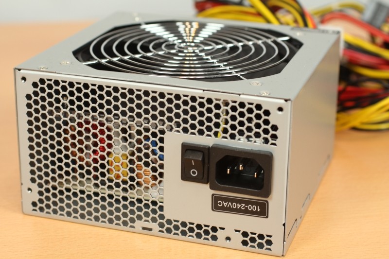 特にオーバークロックして採掘する場合は12Vが太くないと動作が不安定になります。ちょうど街に仕入れに行った際に、玄人志向のKRPW-SS600W/85+があったのでこれを使います。電源変換効率も良く、いくぶんか消費電力対効率は上がるはずです。