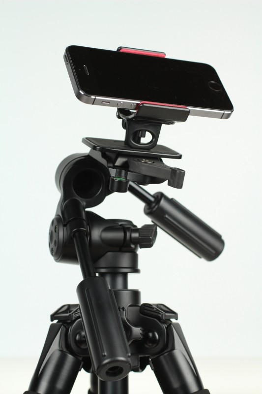 Clasp for smartphoneはデジカメを取り付けたときと角度が違い、雲台を少し手前に倒して水平になります。