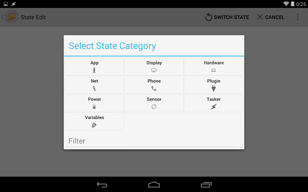 Display Stateの設定をONにして画面左上のTaskerアイコンをタッチします。
