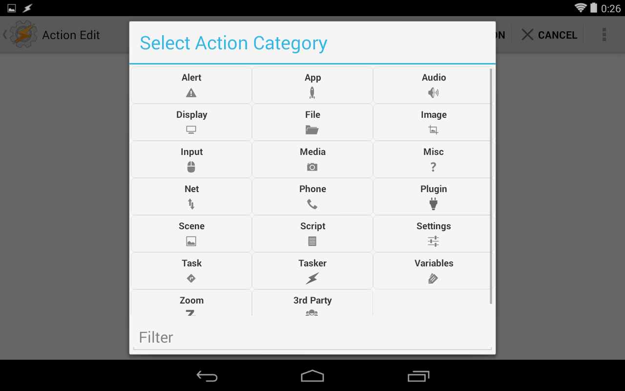 この画面になったらTaskerアイコンをタッチしてタスク設定の最初の画面に戻ります。