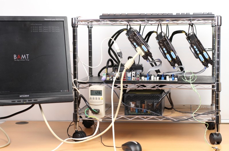 Radeon HD7970を贅沢にも3台取り付けた消費電力1000Wクラスの化け物級採掘PCを導入しました。