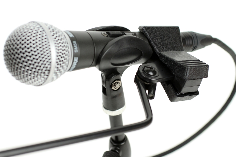 クリップでこのようにマイクに取付けて使います。